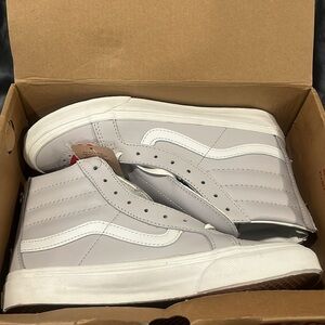 Brand New in box.. never worn size 6.5 women/5 men. Gray and White Leather