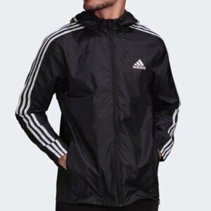 Adidas ESSENTIALS 3-STRIPES WOVEN WINDBREAKER Jacket in Men's Size 2XL. From 2021. A sporty windbreaker made with recycled materials. Sport isn't just a game you play or a thing you do. It's a mindset. The iconic 3-Stripes on this adidas windbreaker serve as a little reminder that it's always in you. Ripstop fabric and a mesh-lined hood keep you comfortable when you're out in a cool breeze. Made with 100% recycled materials.