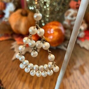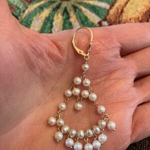 14 Karat yellow gold chandelier style dangle earrings with lever back closures, stamped 14K. Each earring contains twenty five freshwater cultured pearls. I purchased the pair from a local jeweler, just never wore them. They measure about 2.25” long. Please check my other listings for more unique jewelry items!