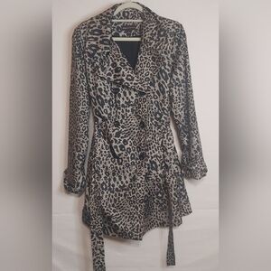 Dana Buchman Leopard Print Trench Peacoat Jacket, Size L