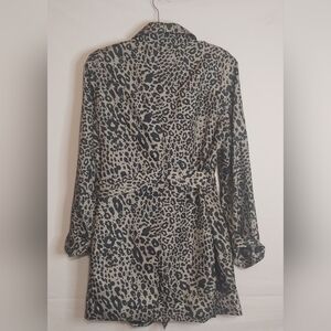 Dana Buchman, Leopard Print, Lightweight, Peacoat, Trench, Windbreaker, Rain, Jacket, Size Large, Previously Loved Condition, Animal Print, Black Tan, Ocelot, Fall, Casual. Business Casual