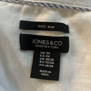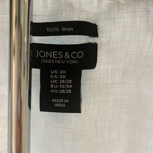 Woman’s plus size 100% linen lightweight jean jacket. New without tags. 26” long , 28 inches across, armpit to armpit. White.