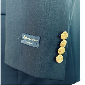 BROOKS BROTHERS Madison Fit Navy Blue Gold Button Front Wool Blazer Sport Coat Jacket
