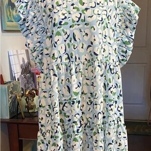 Soft silky fabric. Elastic bottom . Blousy flowy style. Fits up to an XL. Dolman sleeve style. Size large. Excellent condition.