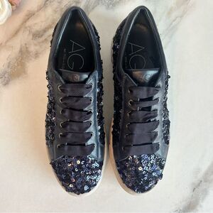 AGL Mollie Bling Sequin Embellished Platform Sneaker In Night Size 8 NEW