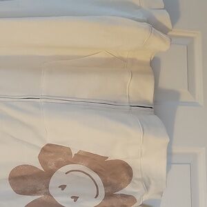 Cream zipped hoodie jacket. Tan flowers with happy face. 60% cotton, 40% polyester. Size XL. Brand new.