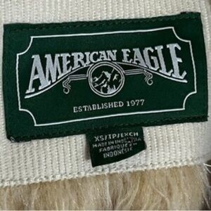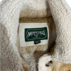 American Eagle plaid tan cream oversized sherpa lined button down sweater jacket