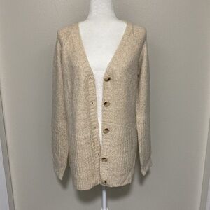 NWT: Women’s Hem & Thread Cardigan. Super soft and cozy. Size Medium. Color Cream/Tan.