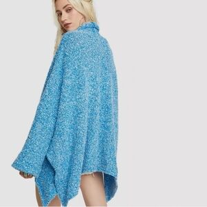 Free People BFF Cardi Boucle Knit Sweater Open Front Big Blue Color Small NWT