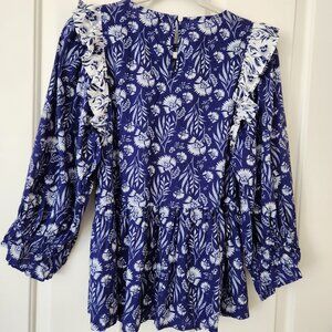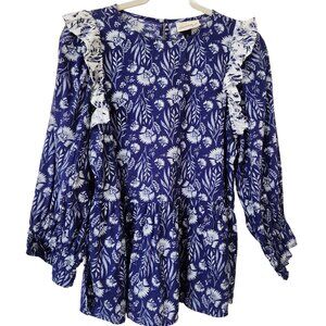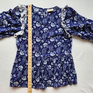 Boho Floral Peplum Top Ruffled Cottage Core Blue Prairie Feminine Romantic XS