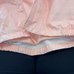 Gently worn only handful of times, removable fleece liner so two jackets in one with hood on outer rain jacket. Smoke free home, light pink I believe is pink moss color.