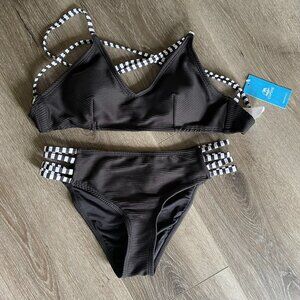 NWT Victoria’s Secret Black Gold Studded Crossbody Saddle Bag Purse