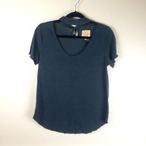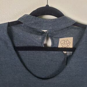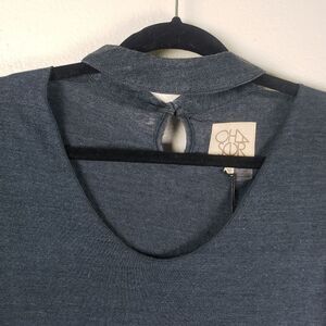 Chaser Women's Grey Basic Chocker Double Button Peep Hole Short Sleeve Shirt Med