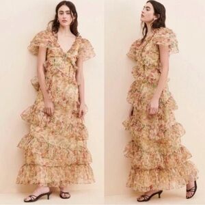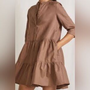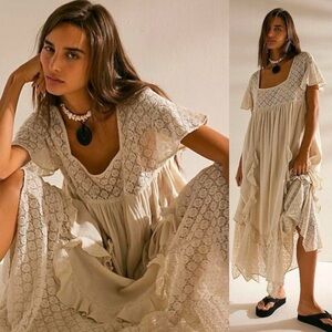 Mini length dress from Free People. Features a mesh panel to the reverse for a feminine look. Cut with a plunging neckline and finished with flutter sleeves.