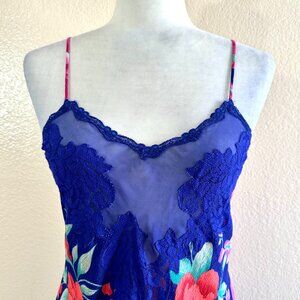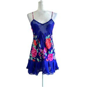 Victoria Secret Vtg 90s Floral Blue Gold Label Slip On Lingerie