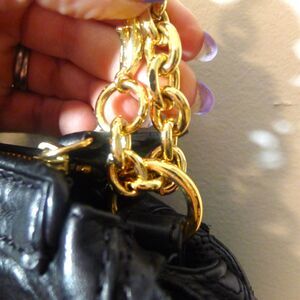 Vintage Y2K Juicy Couture Leather Pull Chain Crossbody Bag - Black/Gold. This item is pre-owned but in excellent condition.
