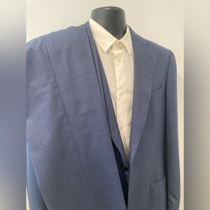 The suit is pre-owned, but in excellent condition minus one small hole as pictured. Ideal for those looking to add a touch of sophistication to their wardrobe, this Tom Ford suit is a great choice. Make a statement with this stylish and timeless suit that is sure to impress any fashion-forward individual.