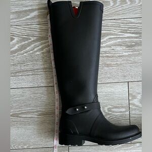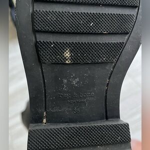 Women’s Rag & Bone Black Rubber MOTO Rain Boots, Side Zip, Ankle Strap, Size 35