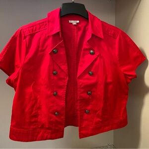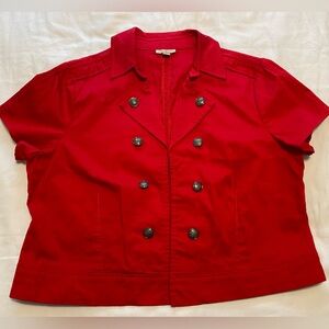 Ladies XL Roz & Ali red short sleeve jacket with gold buttons