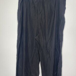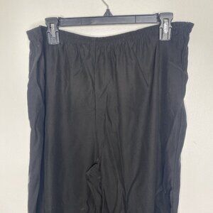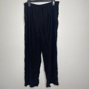 Eileen Fisher L Silk Pants Black Elastic Waist Wide Leg Pull On
