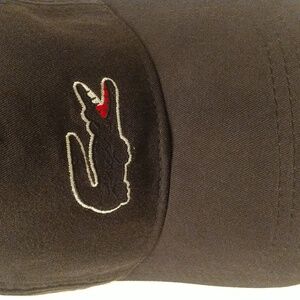 Authentic! Gently used. Please look at pictures for condition details as this is the exact item that you will receive. Lacoste Big Blackout Croc Limited Edition Hat! Leather slip one size fits most adjustable strap with clasp and logo detail. Inside has logo throughout the inside supporting bands and the hat is very comfy! Color is rich semi charcoal black weathered look material, but a uniform color throughout. This is a Must Have for Lacoste fans and hat collectors alike!