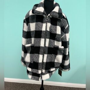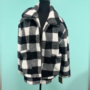 Steve Madden Black & White Buffalo Plaid Fleece Zip-Up Jacket size L.