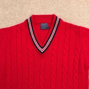Vintage Gant The Rugger Wool Sweater Mens Large Red Cable Knit V Neck Jumper