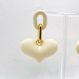 Ivory White Heart and Chain Detail Drop Statement Earrings Feminine Chunky