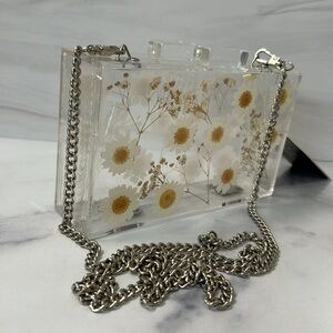 Daisies acrylic transparent lucite box clutch with silver chain strap🌼