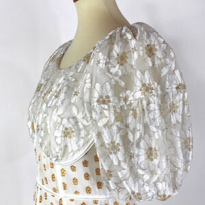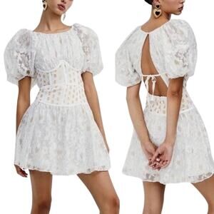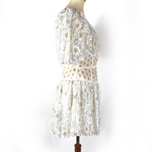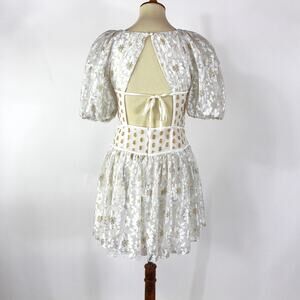 For Love & Lemons Lupita Mini Dress NEW White Gold Corset Shimmer Floral Lace L