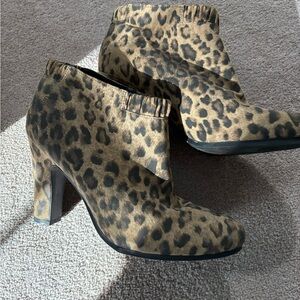 Leopard print Sam and Libby, 4 inch heel boots. Wore once.