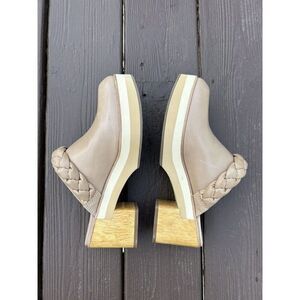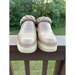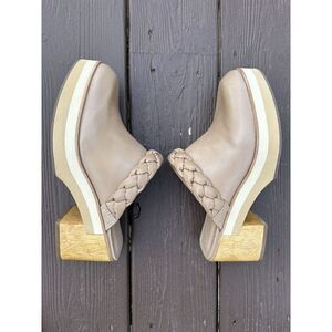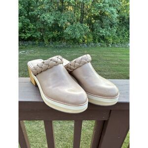 Bernardo Sand Brown Leather Braided Heeled Clogs Saffia 8.5 M New Mule. Minor scratches due to storage please see the pictures. Its brand new no tags or box. Sold as is.