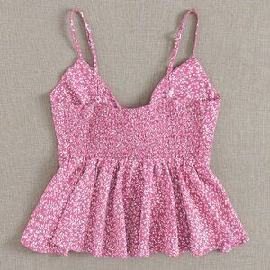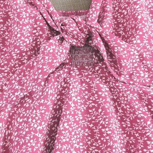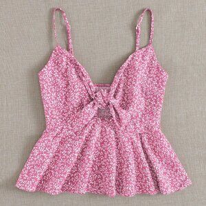 Pink Boho Womens Full-Printed Plant Pattern Tie Front Cami Top