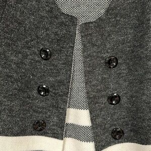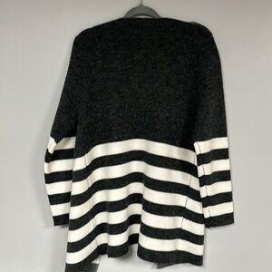 Beautiful Baciano Charcoal Grey and white Color Block / Striped Knit Long Cardigan, XL
