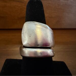 Handmade spoon ring made by me from vintage silver plated spoon. All my jewelry is made from silverware found at estate sales, since this was a used spoon there may be imperfections in the metal. This ring is a size 6.5.