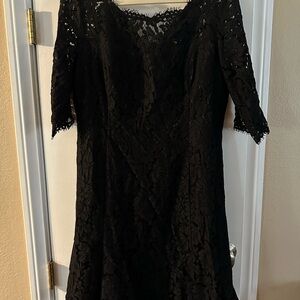 Lace Eliza J black dress great for any celebration. Size 16 beautiful dress the sleeves are all lace has a zipper on the back fully lined. Length 37”