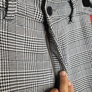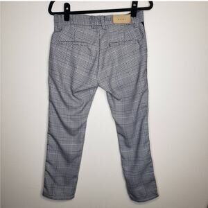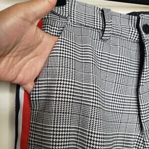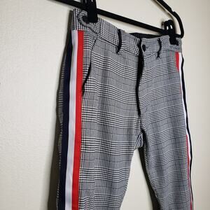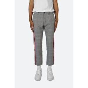 MNML cropped Grandpa Track Pants, plaid pants with side stripe, soft material.