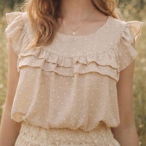 ARITZIA WILFRED CREAM SMOCKED LACE-UP RUFFLE BLOUSE M NWT