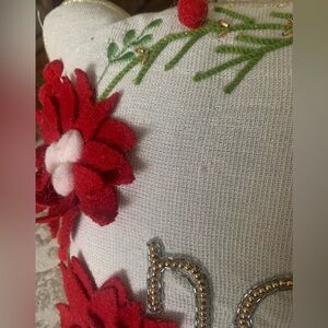 Jingles & Joy Decorative Throw Pilllow “Noel” Applique Pointsettas Embroidery