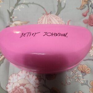 Betsey Johnson sunglasses case. pink/black. hinged. has some wear. smoke free home.