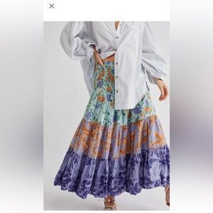 Free people bubble convertible maxi skirt size small color blues NWOT