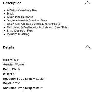 all saints cross body, very good condition, 2 straps included one leather one silver.
