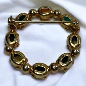 Stunning Gold Tone Scarab Brooch. In ancient Egyptian religion the scarab was a symbol of immortality, resurrection, transformation and protection. A scarab amulet is said to provide the wearer with protection and confidence in the certain knowledge of reincarnation. Stones are real. Carnelian, Moonstone, Prasiolite, Tigers Eye, Black Onyx, Rhodochrosite, Unakite and Chrysoprase.