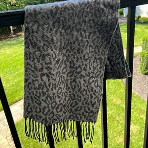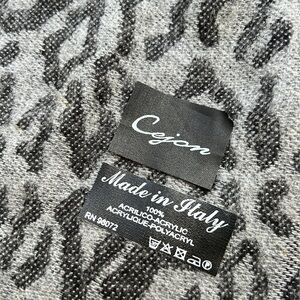 Cejon made in Italy, gray leopard print, oblong scarf/wrap with fringe