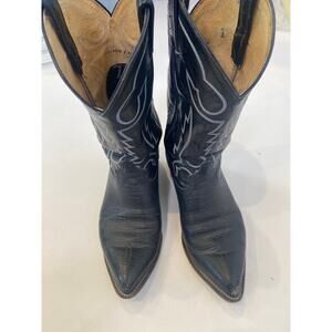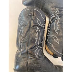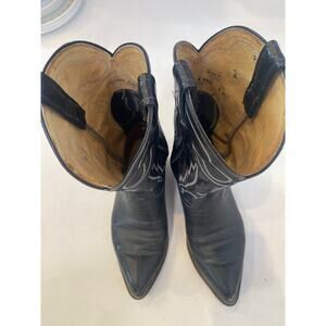 Tony Lama Black w/ White Stitched Cowboy Boots EUC Sz 9 Men’s Leather