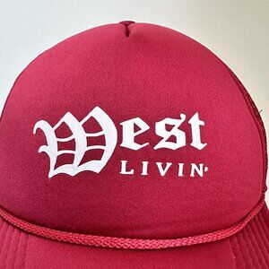 West Livin Decky Trucker Hat Rope Adjustable Snap Back Wine Red Cotton Blend