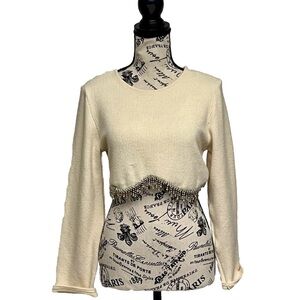 ZARA JEWEL RIBBED SWEATSHIRT CREAM CROPPED Y2k Retro Ethereal Balletcore Prep S