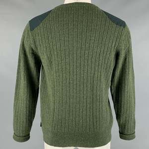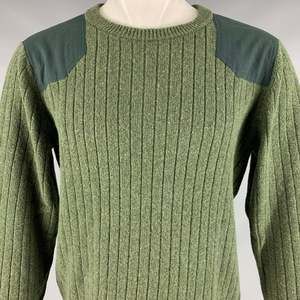 in a green wool blend featuring a ribbed style, shoulder patches, and a crew neck.Very Good Pre-Owned Condition. Minor signs of wear.