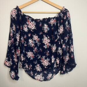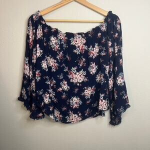 Cottage Core Top Asymmetric Bell Sleeve Coquette Fairy Sz L Dark Floral Flowy Off Shoulder
