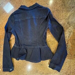 NEW! Guess Denim Peplum Jacket Size XS NWT! Brand New With Tags. Never Worn. Free of odors, stains, pulls, pilling, holes or any other flaws.